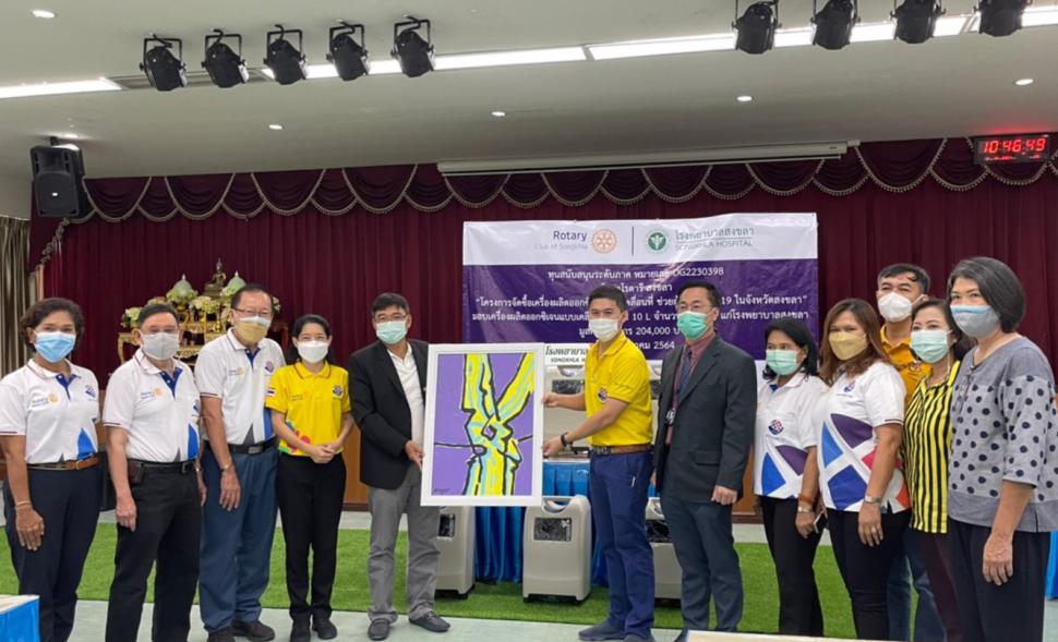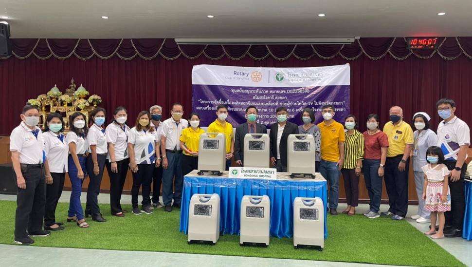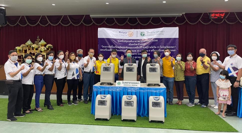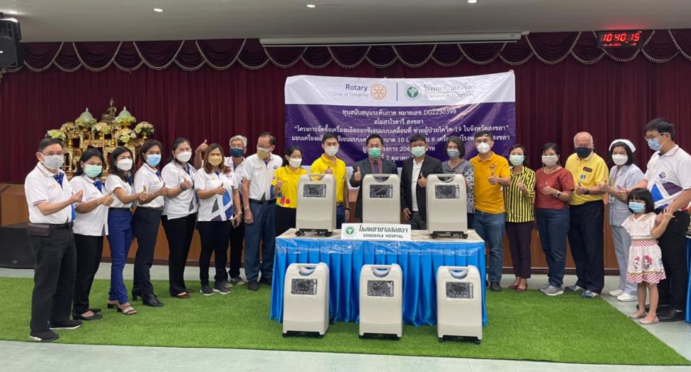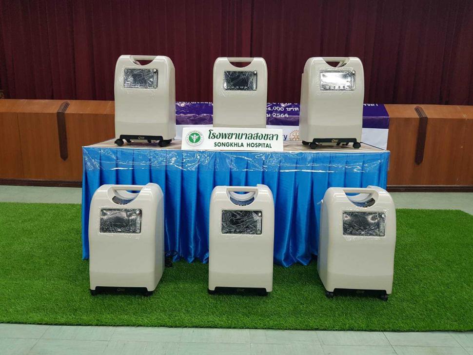 สโมสรโรตารีสงขลา มอบเครื่องผลิตออกซิเจนแบบเคลื่อนที่ขนาด 10 L จำนวน 6 เครื่อง ให้กับโรงพยาบาลสงขลา เพื่อสนับสนุนการดูแลรักษาผู้ป่วยติดเชื้อโควิด-19 ในจังหวัดสงขลา