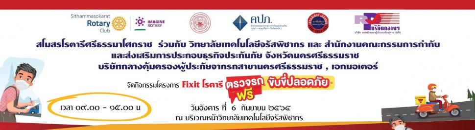 วันที่ 6 กันยายน 2565 สโมสรโรตารีศรีธรรมาโศกราชจัดกิจกรรมบำเพ็ญประโยชน์บริการชุมชน โครงการ.FIXIT โรตารี ตรวจรถฟรี ขับขี่ปลอดภัย
