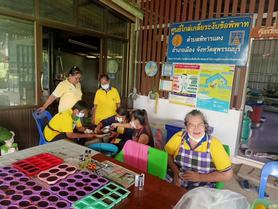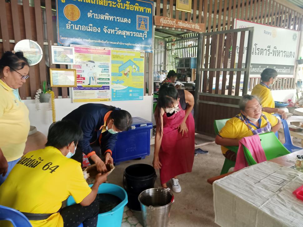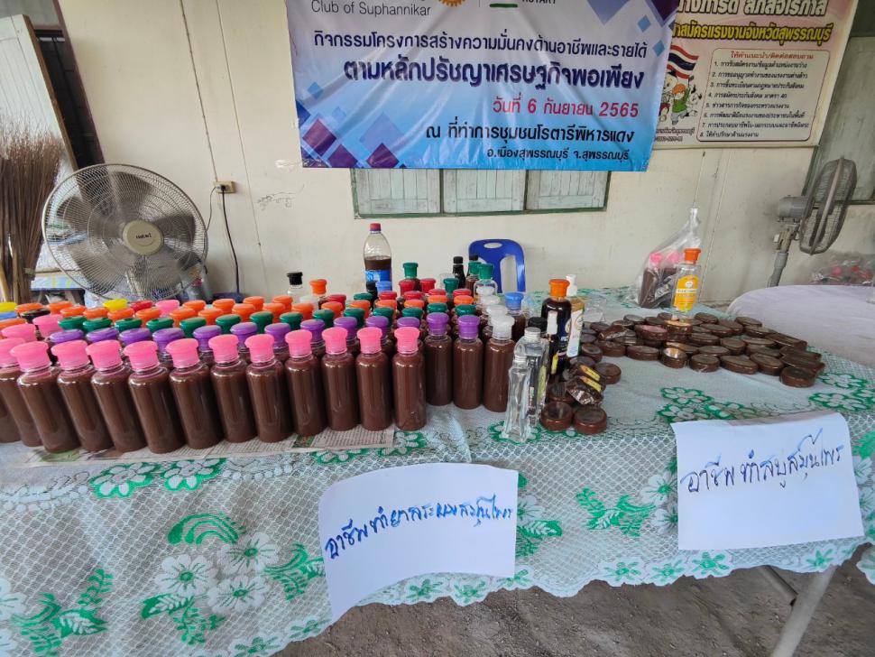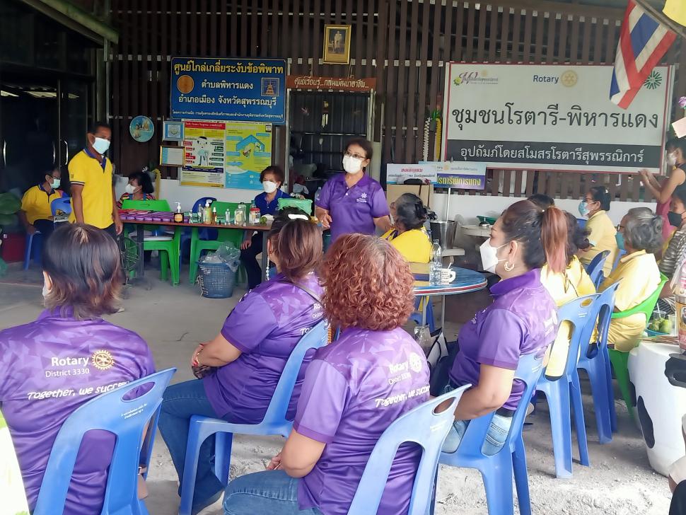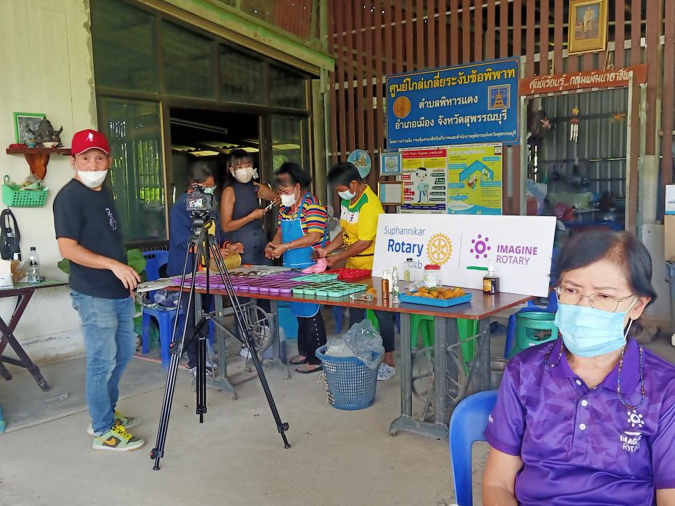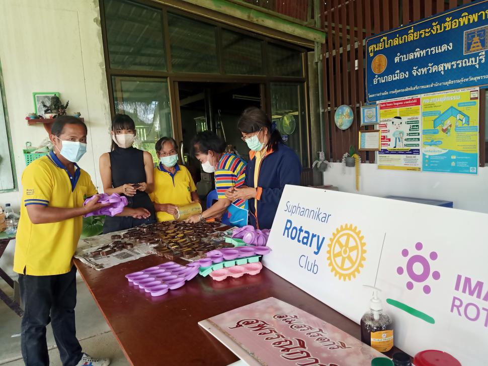 นำโดย น.ย.พัชรกันย์ ปานบ้านเกร็ด พร้อมสมาชิก ร่วมกิจกรรม #โครงการสร้างความมั่นคงด้านอาชีพและรายได้ ตามหลักปรัชญาของเศรษฐกิจพอเพียง กิจกรรม สอนทำสบู่และแชมพูสมุนไพร วิทยากรโดย คุณภารดี ลภัสจิโรภาส ประธานชุมชนโรตารีพิหารแดง ร่วมกับพัฒนาชุมชนจังหวัดสุพรรณบุรี ผู้เข้าร่วมจำนวน 30 คน โดย ท่านพระครูโสภณ รองเจ้าอาวาสวัดป่าเลไลยก์ ให้ความเมตตาเป็นวิทยากร แนะแนวทางการจำหน่ายผลิตทางออนไลน์ พร้อมถ่ายทำวิดีโอ เพื่อประชาสัมพันธ์และเผยแพร่ #ศูนย์การเรียนรู้พิหารแดง ณ ที่ทำการ ชุมชนโรตารีพิหารแดง หมู่ 5 ต.พิหารแดง อ.เมือง จ.สุพรรณบุรี