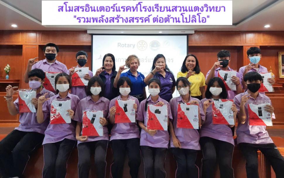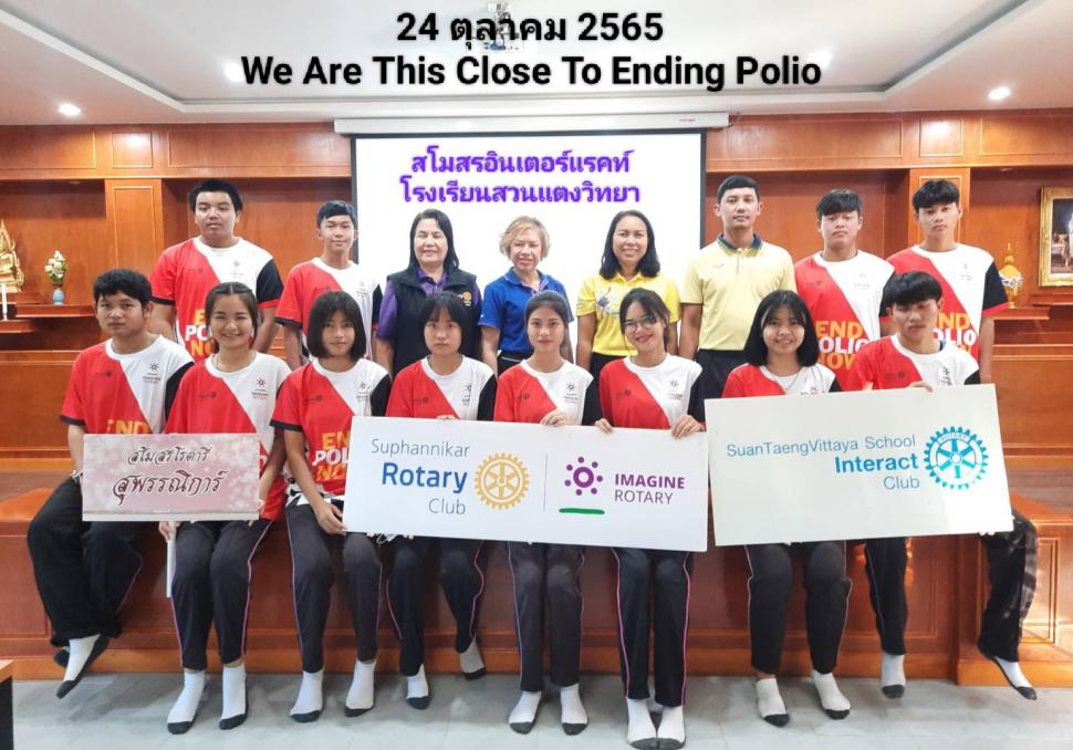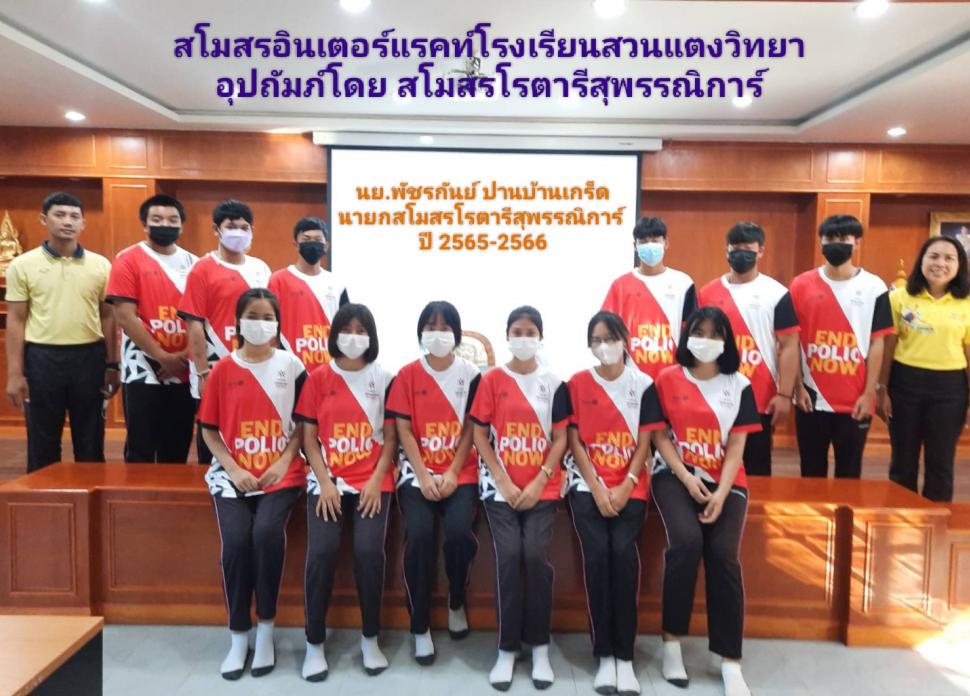 วันอังคารที่ 18 ตุลาคม 2565 สโมสรโรตารีสุพรรณิการ์ นำโดย นย.พัชรกันย์ ปานบ้านเกร็ด/รทร.ศศิวรรณ คุ้มฉายา โรแทเรียลที่ปรึกษาอินเตอร์แรคท์ และสมาชิก ประชุมสโมสรอินเตอร์แรคท์โรงเรียนสวนแตงวิทยา ในอุปถัมภ์ เพื่อแจ้งข้อมูลข่าวสาร แนะแนวทางการจัดทำโครงการ งานกิจกรรมบำเพ็ญประโยชน์ กิจกรรมวันโปลิโอสากล แนวนำการเตรียมตัวเข้าร่วมประชุมผู้นำเยาวชนโรตารี (RYLA) และอื่นๆ พร้อมมอบเสื้อโปลิโอ ภาค 3330 ปี 2565-2566 ณ โสตทัศนศึกษา โรงเรียนสวนแตงวิทยา อ.เมือง จ.สุพรรณบุรี
