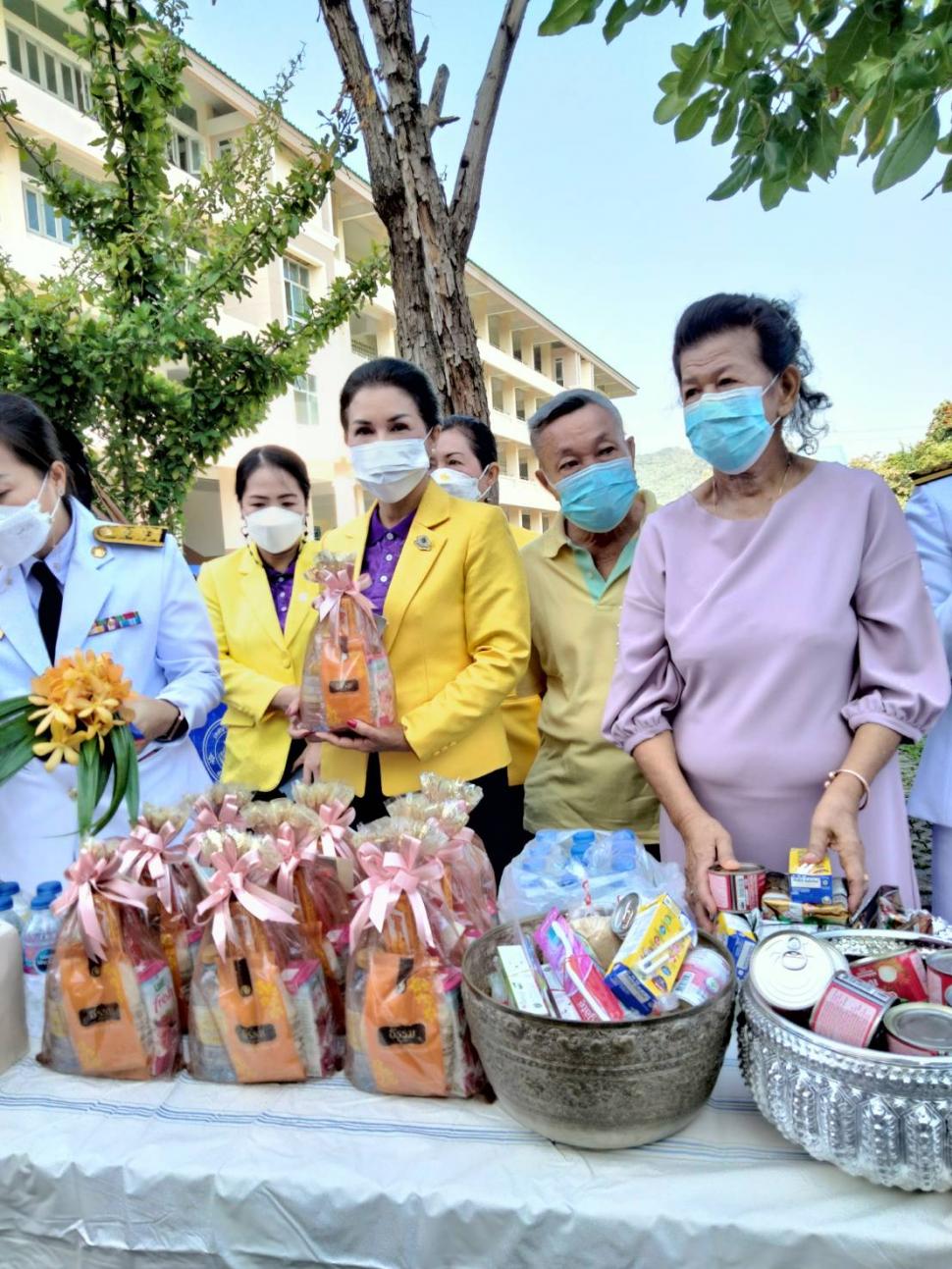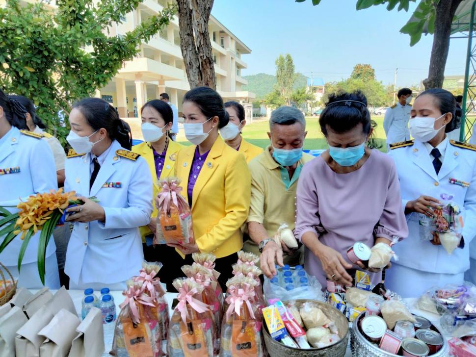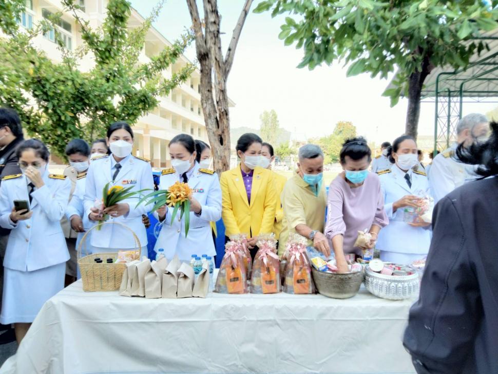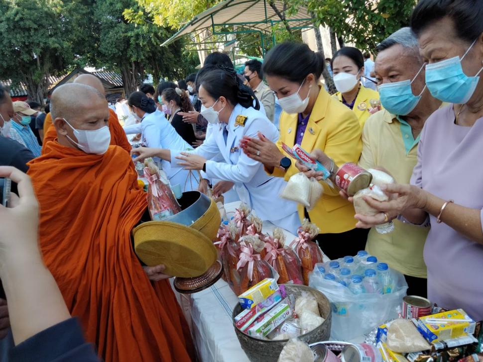 -ช่วงเช้า-เวลา 07:09พิธีสวดพระพุทธมนต์และตักบาตรข้าวสารอาหารแห้งและพิธีวางพวงมาลาถวายบังคมณ.อาคารอเนกประสงค์โดมโรงเรียนหัวหิน