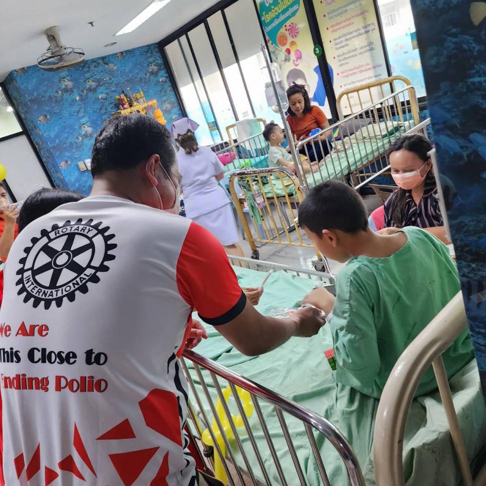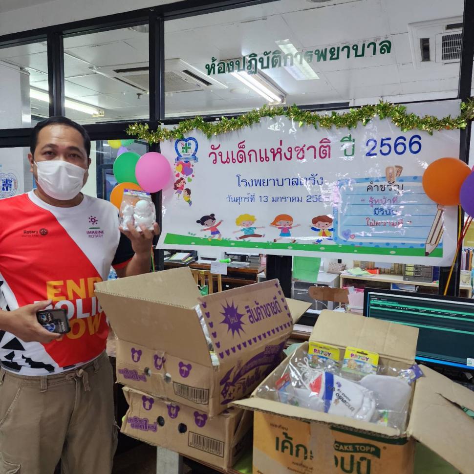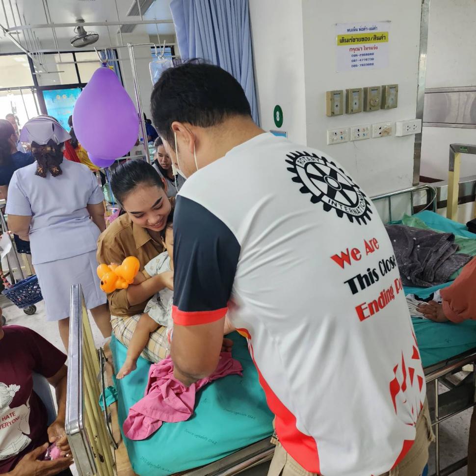 โรตารีทับเที่ยง นำโดย นย.ปฏิพล อัยราชธนารักษ์ ร่วมกับ เหล่ามวลมิตรโรตารีทับเที่ยง ร่วมกันส่งมอบของเสริมพัฒนาการและทักษะแก่เด็ก ณ.โรงพยาบาลตรัง