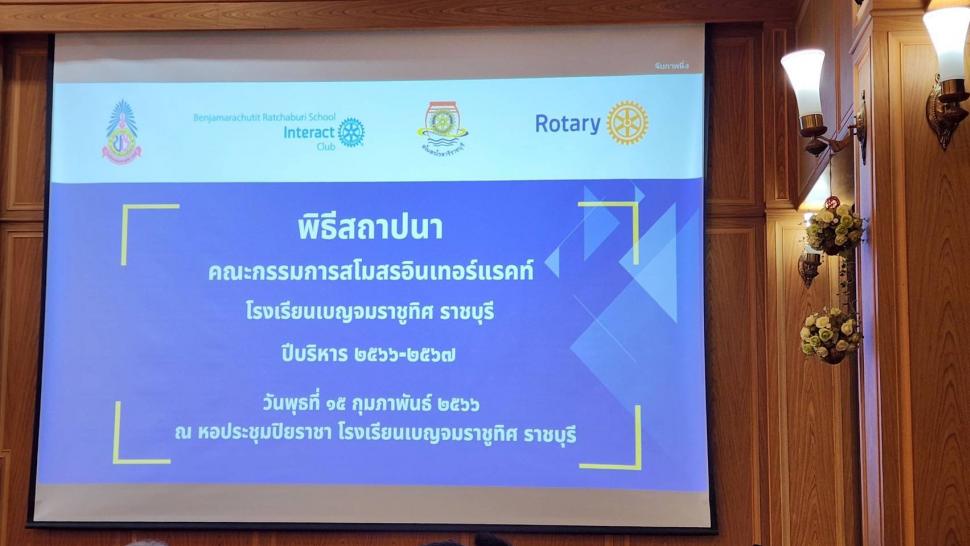 สโมสรโรตารีราชบุรีร่วมพิธีสถาปนาคณะกรรมการบริหารสโมสรอินเทอร์แรคท์โรงเรียนเบญจมราชูทิศราชบุรี โดยมอบเงินสนับสนุนทำกิจกรรมบำเพ็ญประโยชน์จำนวนเงิน 5,000 บาท และมอบทุนการศึกษาจำนวน 5 ทุน ๆ ละ 2,000 บาท