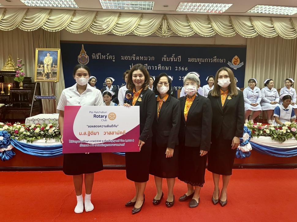 นำโดยนายกเจนจิรา เดือนขึ้น ประธานมูลนิธิ อน.สุมาลี ธนวัฒน์ และสมาชิก ร่วมพิธีไหว้ครูและมอบทุนการศึกษา ภาค 3330 ระดับปริญญาตรีปีละ 2,000 $ เป็นเวลา 4 ปี ตามหลักสูตรพยาบาลศาสตร์ ณ วิทยาลัยพยาบาลบรมราชชนนี ราชบุรี