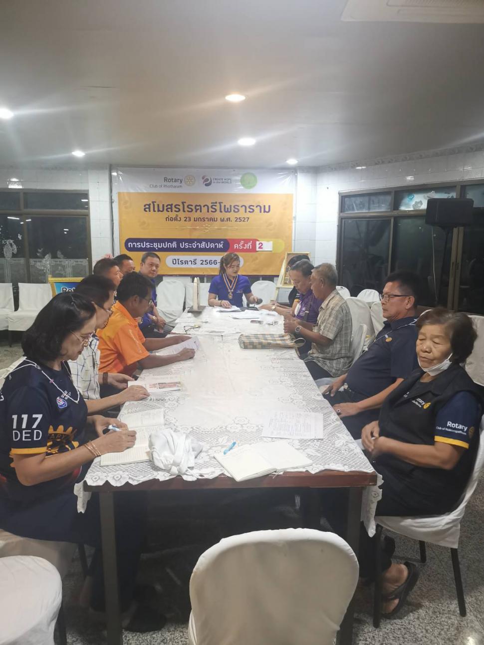 วันที่ 31 กรกฏาคม 2566 นำโดยนายกภณิชชา จงสุภางค์กุล เปิดประชุมครั้งที่ 2/2566 ณ ร้านอาหารลาบร้อยเอ็ด อำเภอโพธาราม จังหวัดราชบุรี ซึ่งในการประชุมมีการนำเสนอแผนงาน/โครงการในปีบริหาร 2566-2567 ในการนี้อน.สมศักดิ์ เจียมฉวี ผู้ช่วยผู้ว่าการภาค 3330 พื้นที่ 20 ได้ให้คำแนะนำต่างๆ การเตรียมความพร้อมของสโมสรในการเยี่ยมของผู้ว่าการภาคในวันที่ 30 พฤศจิกายน 2566 และอน.สมบูรณ์ กวงเมี้ย มอบเงินสนับสนุนจำนวน 20,000 บาท ในการดำเนินกิจกรรมของสโมสร